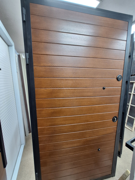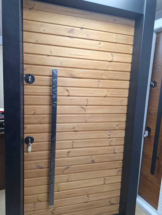 درب ضد سرقت ایمنی شرکتی تیپ ترک مدل ترمو وود 16 میل فنلاند مناسب برای مناطق شرجی ، سرد مقاوم دربرابر آفتاب و باران و رطوبت لبه ضد دیلم دار ورق 2